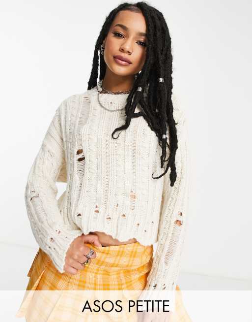 ASOS DESIGN Petite – Pullover in Creme mit Zopfstrickmuster und Leiternaht