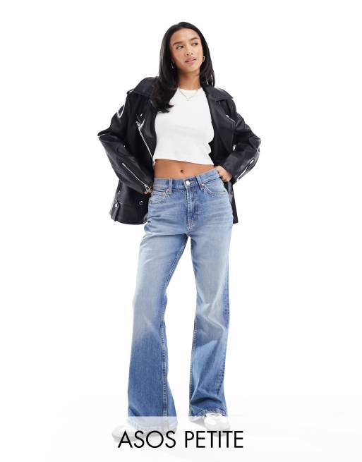 ASOS DESIGN Petite – Schlagjeans in Mittelblau mit mittelhohem Bund