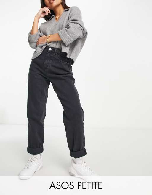 ASOS DESIGN Petite – Sehr locker geschnittene Mom-Jeans in verwaschenem Schwarz