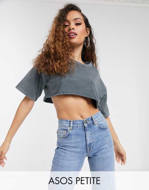 ASOS DESIGN Petite – Superkurz geschnittenes T-Shirt in verwaschenem Schwarz