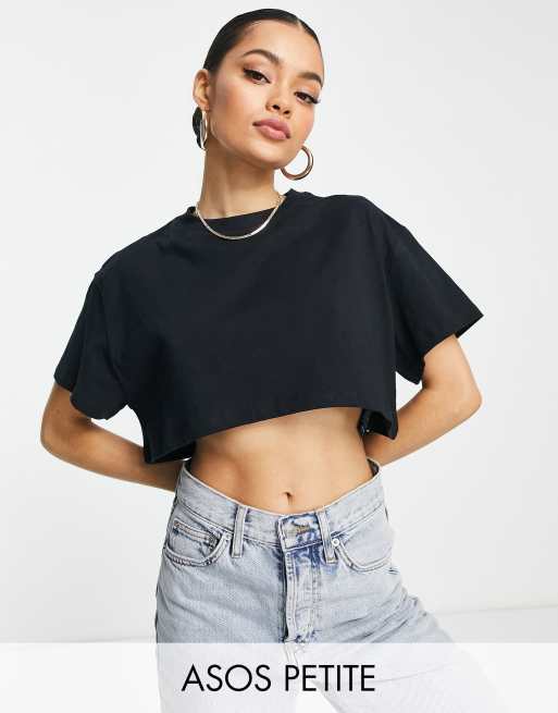 ASOS DESIGN Petite – Superkurzes T-Shirt in Schwarz