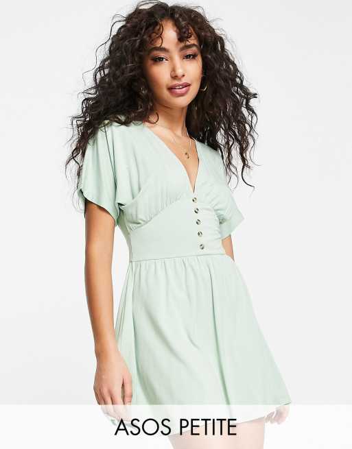 ASOS DESIGN Petite – Tailliertes Mini-Freizeitkleid in Salbeigrün mit Knöpfen