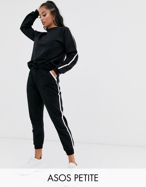 ASOS DESIGN Petite – Trainingsanzug aus Sweatshirt und Jogginghose mit Taillenschnürung und kontrastierender Paspelierung