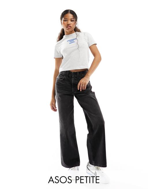 ASOS DESIGN Petite – Weite Dad-Jeans in verwaschenem Schwarz