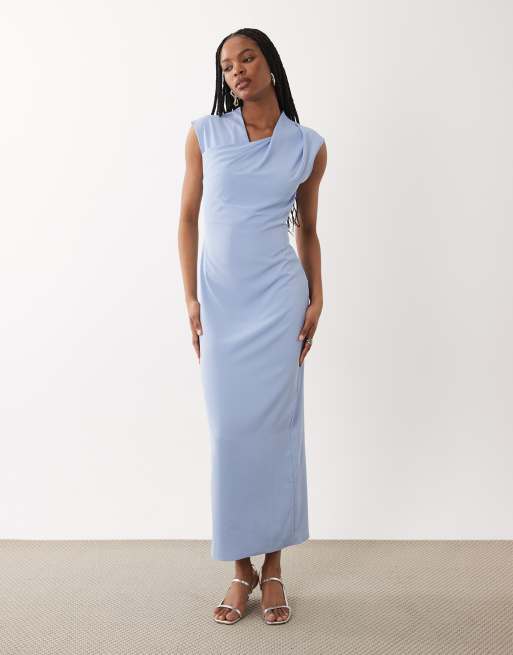 ASOS DESIGN Tall – Anschmiegsames Midikleid in Hellblau mit verdrehtem Ausschnitt