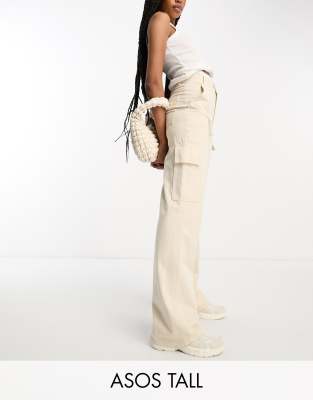 ASOS DESIGN Tall – Cargohose in Ecru mit hohem Bund und geradem Schnitt