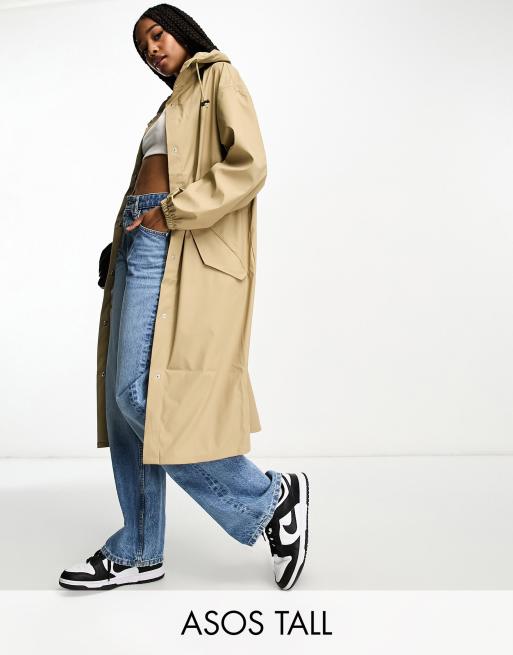ASOS DESIGN Tall – Gummierter Parka-Mantel in Stein