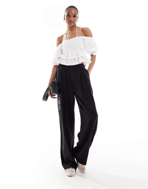 ASOS DESIGN Tall – Hochwertige, lässige Schlupfhose in verwaschenem Schwarz mit Bundfalten