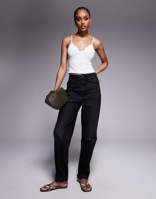 ASOS DESIGN Tall – Locker geschnittene Mom-Jeans in Schwarz mit hohem Bund