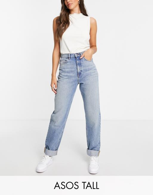 ASOS DESIGN Tall – Lockere Mom-Jeans in Stone-Waschung mit hohem Bund