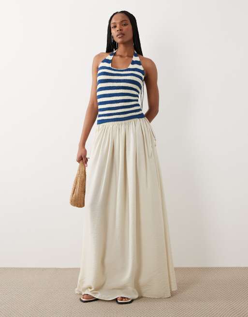 ASOS DESIGN Tall – Maxirock in Creme mit Knitterstruktur und Bindegürtel
