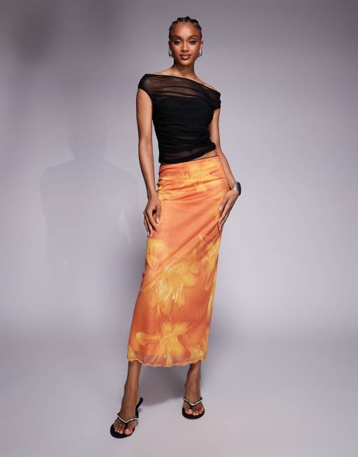ASOS DESIGN Tall – Midirock aus Netzstoff mit übergroßem Blumenmuster