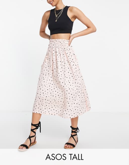 ASOS DESIGN Tall – Midirock mit Taschendetail und Punktemuster