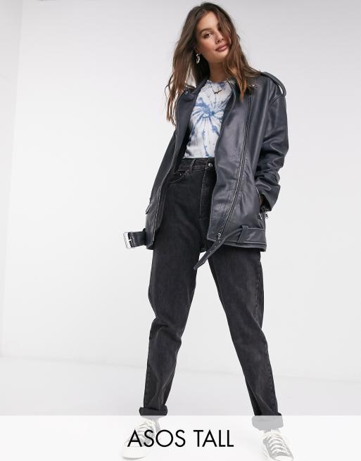 ASOS DESIGN Tall – Oversize-Bikerjacke aus Leder in verwaschenem Schwarz
