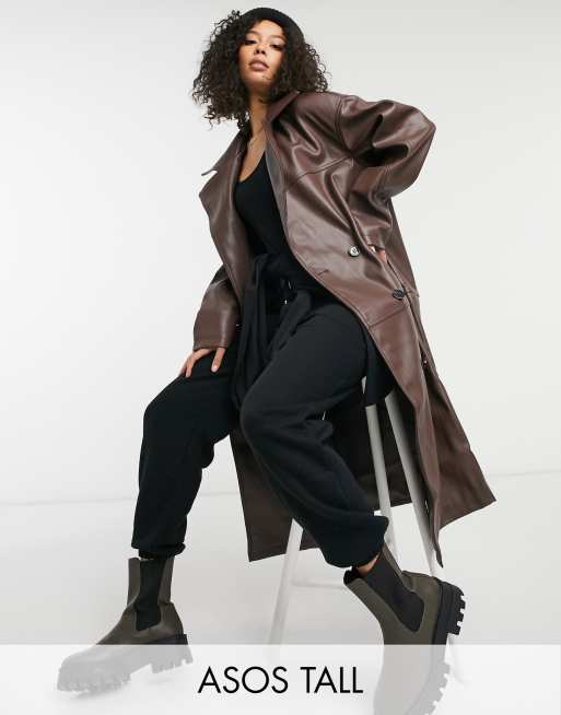 ASOS DESIGN Tall – Oversize-Mantel aus Kunstleder in Braun