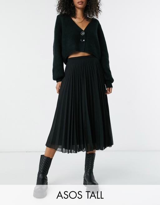 ASOS DESIGN Tall – Plissierter Midirock in Schwarz