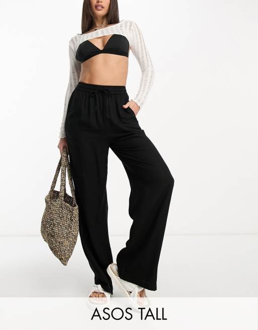 ASOS DESIGN Tall – Schlupfhose in Schwarz mit Leinenanteil