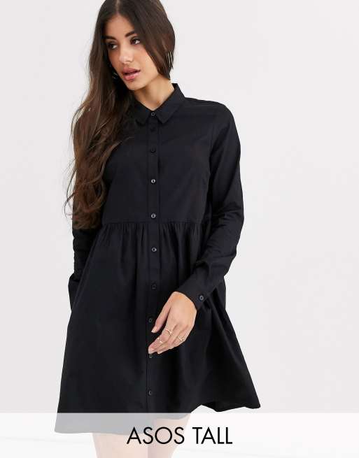 ASOS DESIGN Tall – Schwarzes Mini-Hängerkleid aus Baumwolle