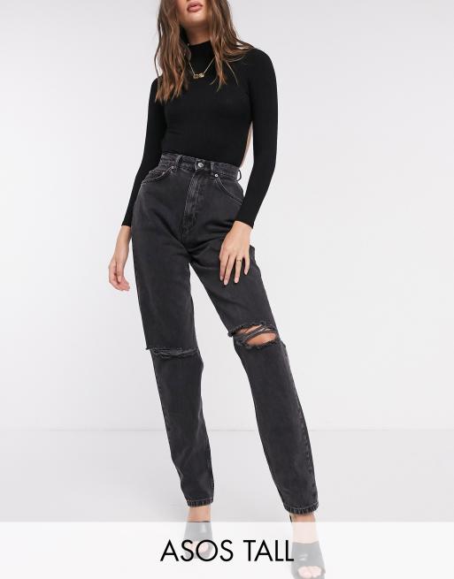 ASOS DESIGN Tall – Slouchy – Mom-Jeans mit hohem Bund und Zierrissen in verwaschenem Schwarz