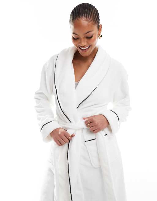 ASOS DESIGN Tall – Superweicher Midi-Bademantel aus hochwertigem Fleece in Weiß
