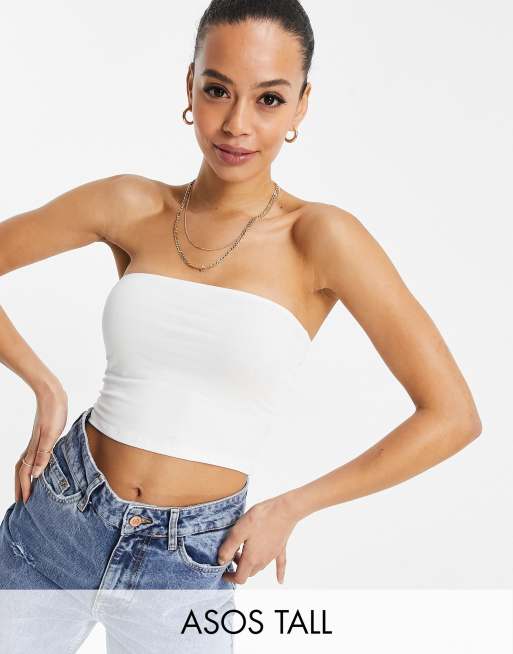 ASOS DESIGN Tall – Ultimate – Trägerloses Oberteil mit kurzem Schnitt aus Baumwolle in Weiß - WHITE