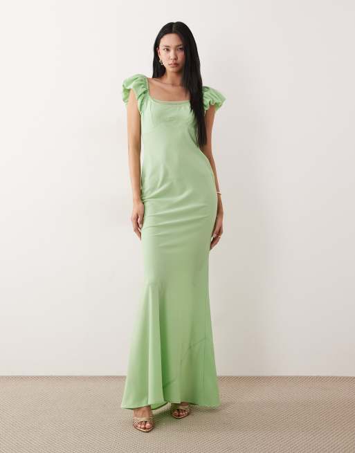 ASOS DESIGN Tall – Zweilagiges Etuikleid in Hellgrün mit Rüschenärmeln
