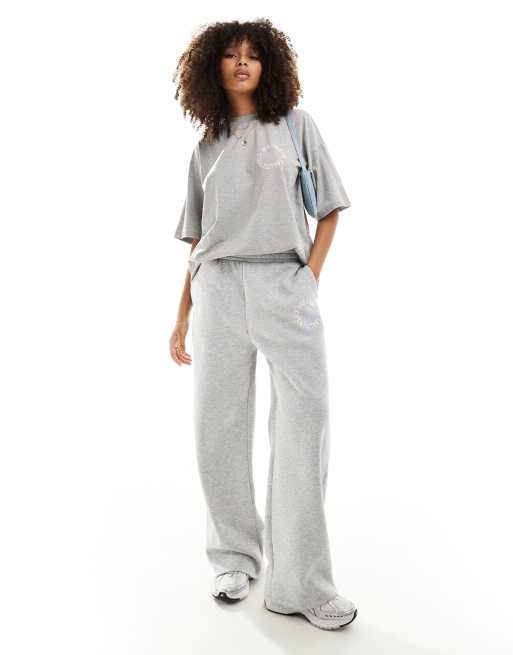 ASOS DESIGN – Weekend Collective – Gerade geschnittene Jogginghose in Grau meliert mit Pastell-Logo