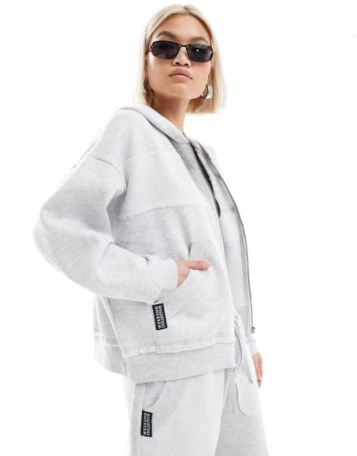 ASOS DESIGN Weekend Collective – Kapuzenjacke in meliertem Grau mit umgekehrter Naht und durchgehendem Reißverschluss