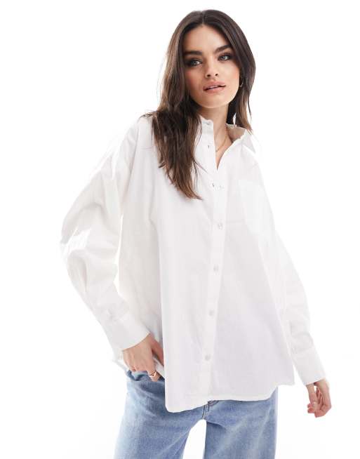 ASOS Weekend Collective – Oversize-Hemdbluse in Weiß mit gewebtem Aufnäher