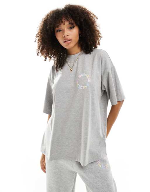 ASOS – Weekend Collective – Oversize-T-Shirt in Grau meliert mit Pastell-Logo
