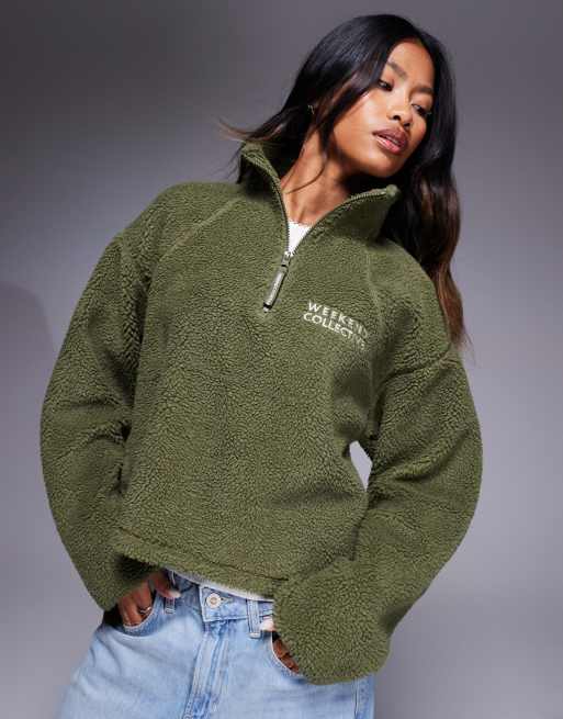 Weekend Collective – Cropped Oberteil aus Teddy-Fleece in Khaki