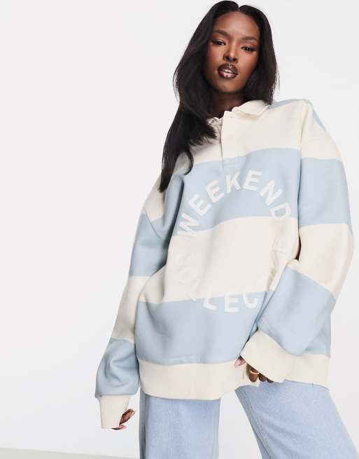 Weekend Collective – Gestreiftes Rugby-Sweatshirt in Blau und Cremeweiß