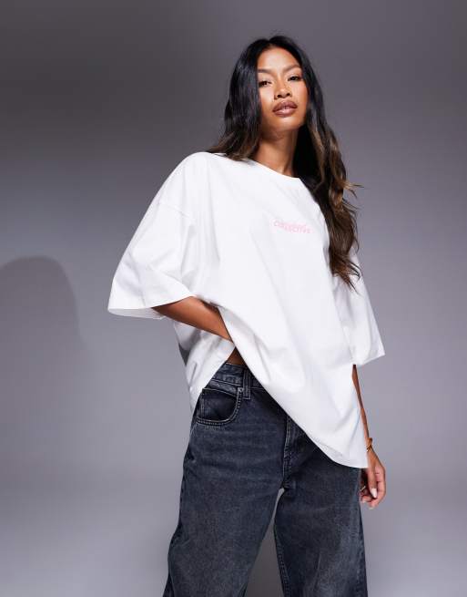 Weekend Collective – Oversize-T-Shirt mit Wellness-Reise-Print in Kokosweiß