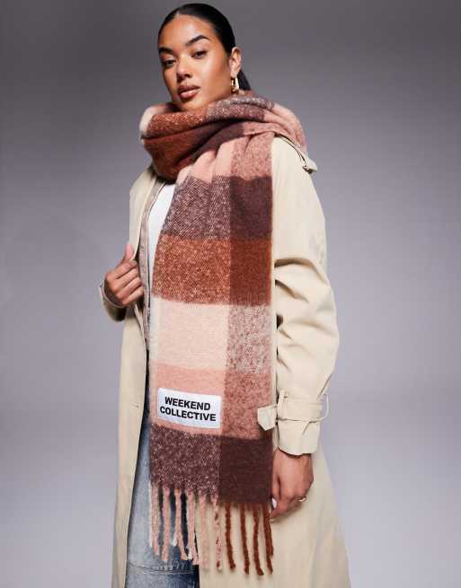 Weekend Collective – Schal in Orange und Schokobraun kariert