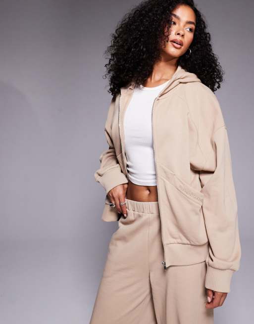 Weekend Collective – Sweatshirt in Schokobraun mit durchgehendem Reißverschluss und Logostickerei, Kombiteil