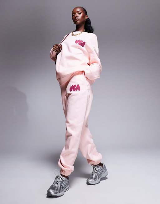 Weekend Collective – T-Shirt mit Ziernaht und rundem Bubble-Print, Sweatshirt und Jogginghose in Rosa