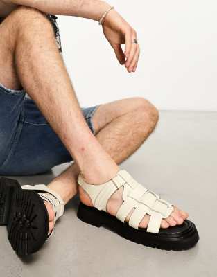 ASRA – Saxby – Fischersandalen aus Leder in Kokosnuss-Weiß