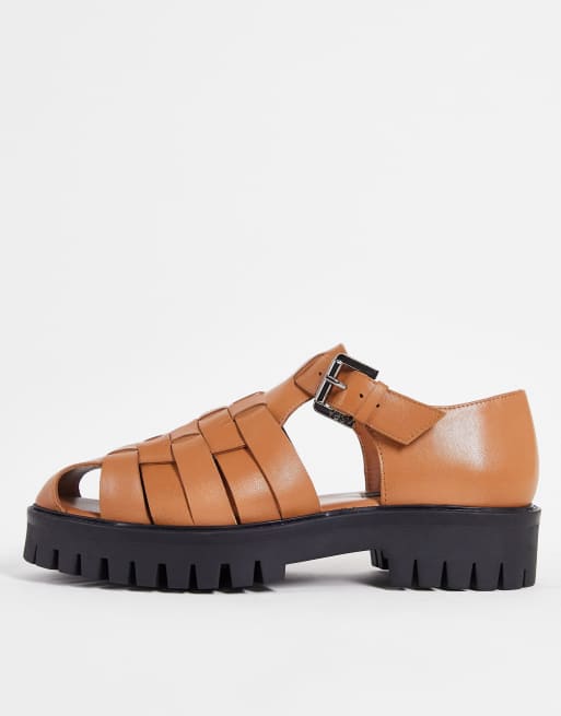 Asra – Secko – Sandalen aus hellbraunem Leder im gewebten Design mit dicker Sohle