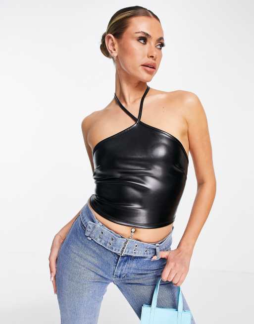 ASYOU – Neckholder-Korsett aus PU-Kunstleder in Schwarz