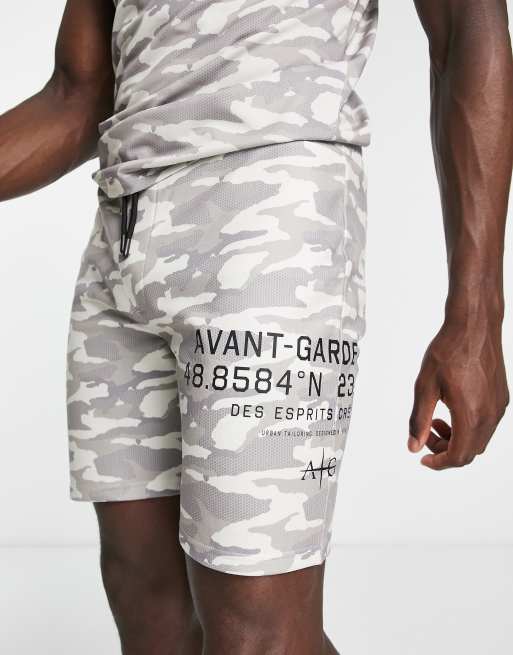 Avant Garde – Grid – Shorts mit Military-Muster in Ecru, Kombiteil