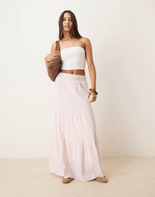 AWARE – Gestufter Boho-Maxirock in Hellrosa mit hohem Bund