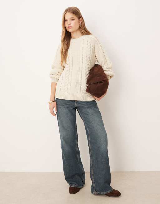 AWARE – Oversize-Pullover aus Grobstrick in Cremeweiß mit Zopfmuster