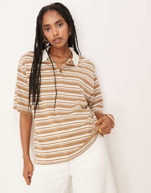 AWARE – Poloshirt in neutralem Farbton mit Streifen und halblangen Ärmeln