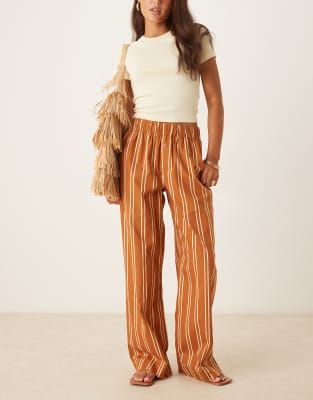 AWARE – Popeline-Hose in gestreiftem Karamell und Cremeweiß im Boxer-Stil mit weitem Bein