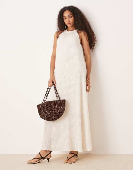 AWARE – Strukturiertes Maxikleid in Weiß mit Neckholder
