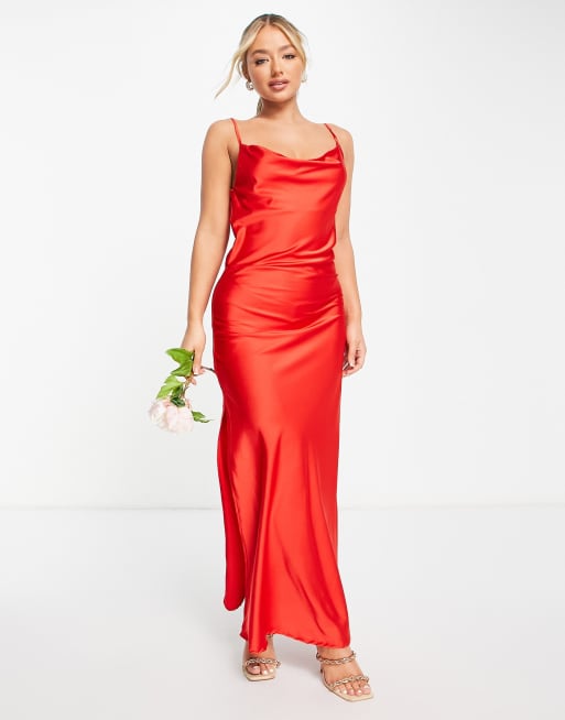 AX Paris – Trägerkleid aus Satin in Rot mit Wasserfallkragen