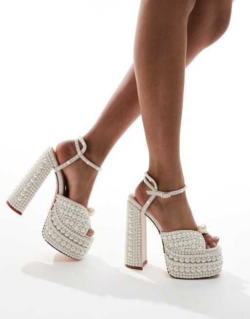 Azalea Wang – Bridal – Brissa – Braut-Absatzsandalen in Weiß mit Perlenverzierung und Plateausohle