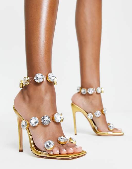 Azalea Wang – Everly – Verzierte, goldfarbene Riemchensandaletten