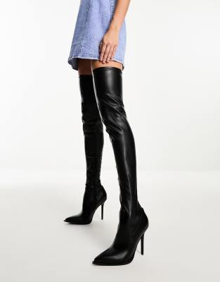 Azalea Wang – Miley – Elastische, charakteristische Overknee-Stiefel in Schwarz