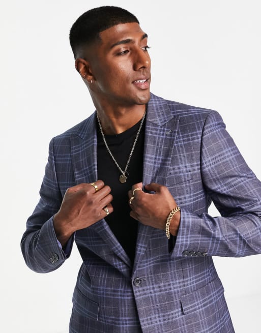 Bando – Schmal geschnittener Anzug mit Karomuster in Marineblau-Bunt